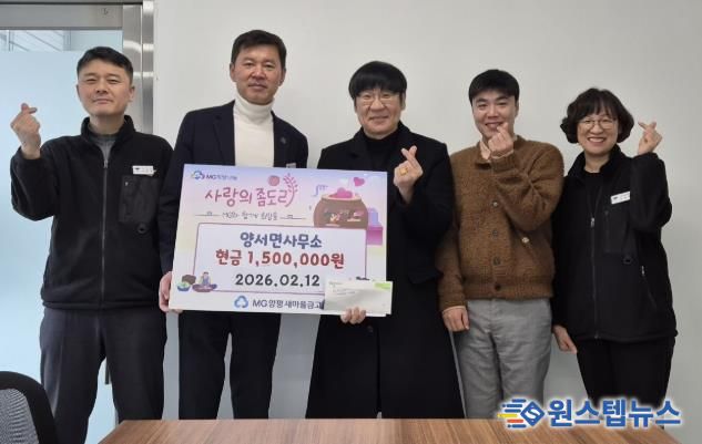 이날 성금 전달은 새마을금고 양수지점 손영옥 지점장이 참석한 가운데 진행됐으며, 기탁된 성금은 기초생활수급자, 독거노인, 한부모가구 등 복지 취약계층을 위한 양서면 복지기획사업에 사용될 예정이다.