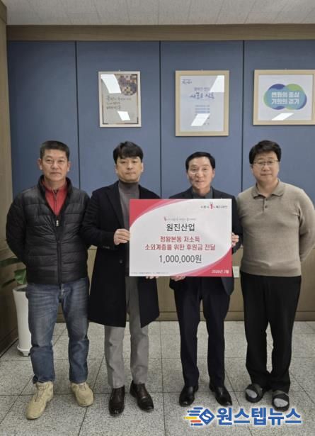 문정식 원진산업㈜ 대표는 “지역사회와 상생하는 기업으로서 어려운 이웃에게 조금이나마 힘이 되고자 후원을 이어가고 있다”라며 “앞으로도 환경 보호는 물론, 다양한 사회공헌 활동을 통해 주민과 함께 성장하는 기업이 되도록 노력하겠다”라고 말했다.