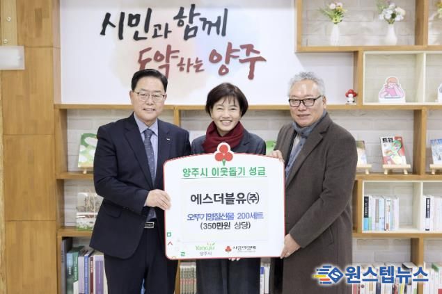양주시 관계자는 “지난해에 이어 꾸준히 나눔을 실천해 주신 에스더블유㈜에 깊이 감사드린다”며 “기탁해 주신 성품은 어려운 이웃들에게 잘 전달해 일상에 보탬이 되도록 하겠다”고 전했다.
