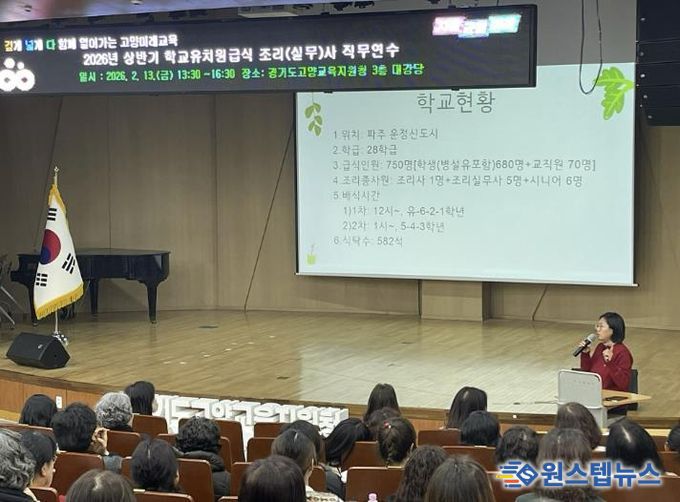 원스텝뉴스 이병희 기자 | 경기도고양교육지원청은 오는 2월 13일, 2월 20일 이틀간 관내 공립유·초·중·고·특수·각종학교 189교 조리(실무)사와 영양(교)사를 대상으로 2026년 상반기 학교·유치원급식 담당자 직무연수를 실시한다고 밝혔다.
