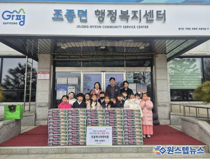 원스텝뉴스 이병희 기자 | 가평 조종하나어린이집은 최근 원아들과 함께 조종면 행정복지센터에 방문해 라면 50박스를 기탁하며 이웃에게 따뜻한 정을 나눴다.