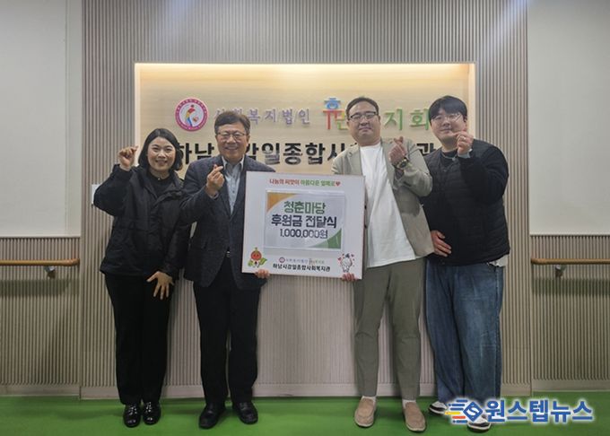 원스텝뉴스 이병희 기자 | 어린이·청소년 교육 공연을 운영하는 전문업체 청춘마당은 지역 취약계층 지원을 위해 2월 11일 하남시감일종합사회복지관(사회복지법인 휴먼복지회 운영)에 후원금 1백만원을 전달했다.