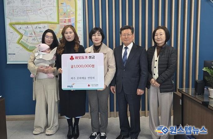 원스텝뉴스 이병희 기자 | 파주시 운정6동은 지난 12일 파주문화예술연합회가 운정6동 관내 취약계층을 위해 성금 100만 원을 기탁했다고 밝혔다.