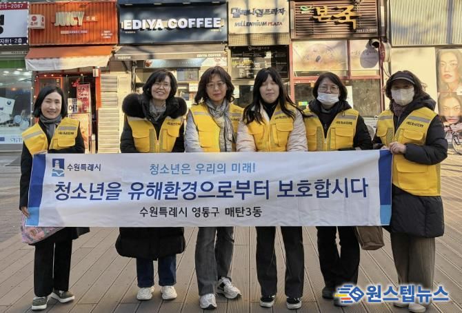 이번 캠페인에는 매탄3동 청소년 지도위원과 동 공직자 등 12명이 참여했으며, 영통구청 인근 상가를 중심으로 청소년 선도·보호와 유해환경 개선을 위한 현장 계도 활동을 펼쳤다. 참여자들은 청소년 대상 주류·담배 판매(제공) 금지 준수 여부 등 관련 사항을 지도·점검했다.