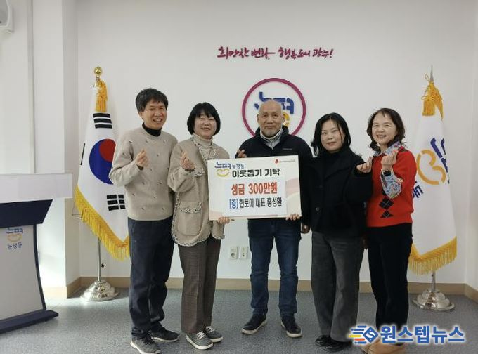 원스텝뉴스 이병희 기자 | 광주시 능평동에 위치한 장난감 전문 할인매장 한토이 홍성환 대표는 20일 새 학기 시작을 기념해 현금 300만 원을 능평동 행정복지센터에 기탁했다.