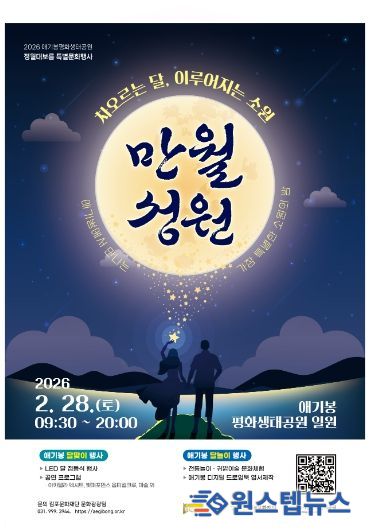 원스텝뉴스 천규영 기자 | 김포시는 애기봉평화생태공원에서 오는 28일 토요일에 2026년 정월대보름 특별문화행사 '만월성원(滿月成願)'을 개최한다고 밝혔다.