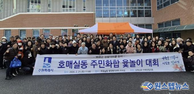 원스텝뉴스 이병희 기자 | 수원시 권선구 호매실동은 단체장협의회 주관으로 지난 21일 행정복지센터 주차장에서 정월대보름을 맞아 마을의 풍요와 안녕을 기원하는 ‘2026년 호매실동 주민화합 윷놀이 대회’를 성황리에 개최했다.