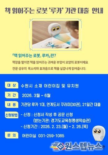 원스텝뉴스 이병희 기자 | 경기도교육청평생학습관이 수원시 소재 어린이집과 유치원을 대상으로 책 읽어주는 로봇 ‘루카(Luka)’와 ‘연계도서 꾸러미’ 대출 서비스를 운영한다.