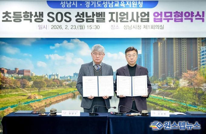 원스텝뉴스 이병희 기자 | 성남시는 2월 23일 성남교육지원청과 ‘초등학생 대상 긴급 구조 요청(SOS) 성남벨 지원 사업’ 추진을 위한 업무 협약을 했다.