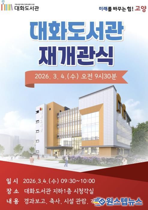 원스텝뉴스 이병희 기자 | 고양특례시 대화도서관이 친환경 새 단장(그린 리모델링)을 마치고 오는 27일 재개관하고, 이를 기념해 3월 4일 재개관식을 개최한다고 밝혔다.
