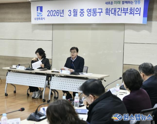 원스텝뉴스 이병희 기자 | 수원특례시 영통구는 지난 24일, 구청 상황실에서 ‘2026년 3월 확대간부회의’를 개최하고, 구정 주요 현안을 집중 점검했다.
