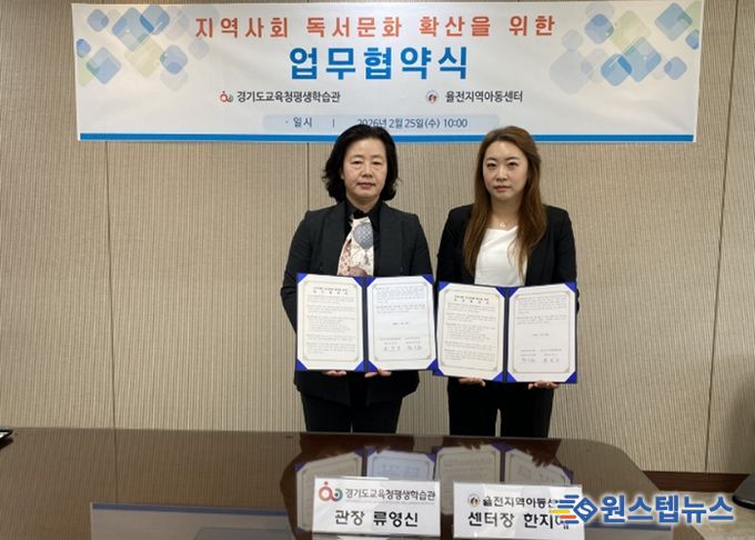 원스텝뉴스 이병희 기자 | 경기도교육청평생학습관이 25일 지역사회 어린이들의 독서문화 확산과 다양한 독서프로그램 개발을 위해 율전지역아동센터(센터장 한지혜)와 업무협약을 체결했다.
