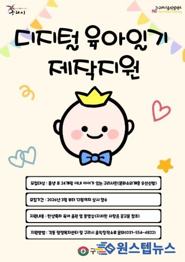 백경현 구리시장은 “저출산이라는 국가적 과제를 극복하기 위해서는 작은 실천이 모여 큰 변화를 만든다고 생각한다”라며 “이번 디지털 육아일기 제작 과정을 통해 탄생의 기쁨을 가족이 함께 나누고, 더욱 화목한 가정이 늘어나길 기대한다”라고 밝혔다.