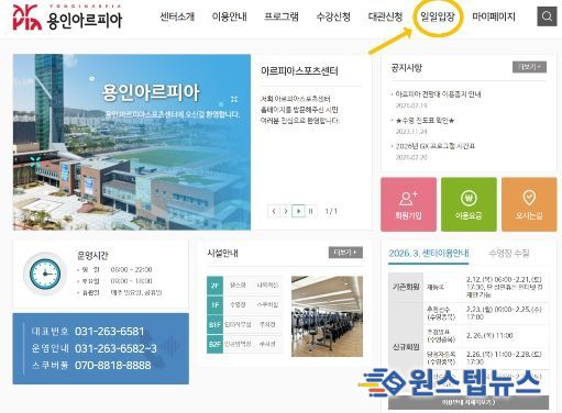 원스텝뉴스 이병희 기자 | 용인도시공사는 2월 27일부터 아르피아스포츠센터 이용객의 편의 증진과 현장 혼잡 완화를 위해 수영장 일일입장권 온라인 예약 서비스를 단계적으로 시행한다고 밝혔다.
