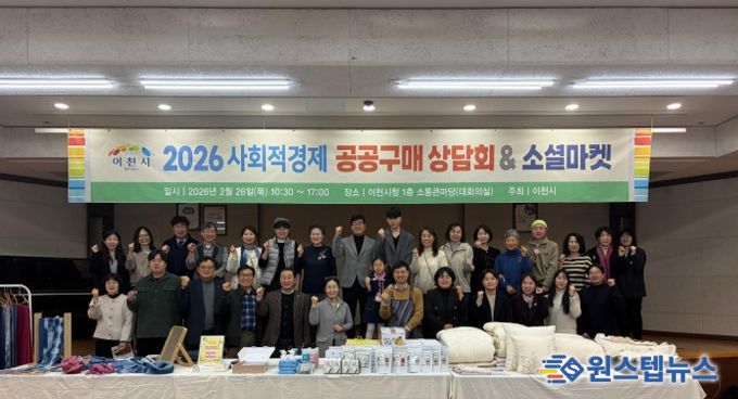 원스텝뉴스 이병희 기자 | 이천시는 2월 26일 오전 10시 30분부터 오후 5시까지 시청 본청 1층 소통큰마당(대회의실)에서 ‘2026년 이천시 사회적경제 공공구매 상담회 & 소셜마켓’을 개최하고 성황리에 마무리했다.