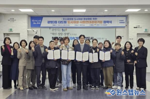 시는 3일 시청 중회의실에서 광명3동 더드림 도시재생사업의 일환으로 ‘탄소로운 팝업’ 활성화를 위한 협력식을 열고, 주민 참여형 탄소중립 실천 모델을 현장에 적용하기 위한 협력체계를 구축했다.