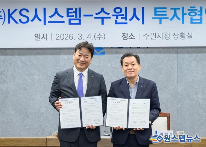 수원시와 ㈜케이에스시스템은 4일 시청 상황실에서 투자협약을 체결하고, 협력을 약속했다.