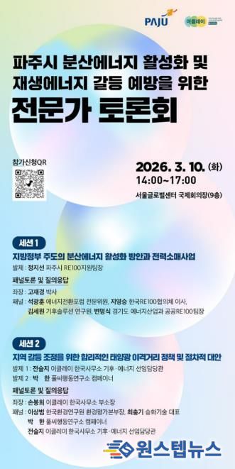 원스텝뉴스 이병희 기자 | 파주시는 이클레이(ICLEI) 한국사무소와 함께 오는 10일 서울글로벌센터 국제회의장에서 ‘분산에너지 활성화 및 재생에너지 갈등 예방을 위한 전문가 토론회’를 개최한다.