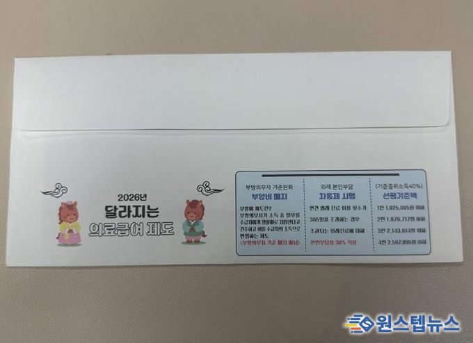 원스텝뉴스 이병희 기자 | 의정부시는 2026년부터 달라지는 의료급여 제도의 핵심 내용을 시민들에게 신속하게 알리기 위해 주요 변경 사항을 담은 맞춤형 우편봉투를 제작했다고 5일 밝혔다.
