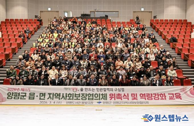 원스텝뉴스 이병희 기자 | 양평군은 지난 4일 양평도서관 물빛극장에서 250여 명이 참석한 가운데 ‘2026년 제11기 읍면 지역사회보장협의체 위촉식 및 역량 강화 교육’을 개최하고, 지역 맞춤형 복지안전망 강화를 위한 본격적인 활동에 들어갔다고 밝혔다.