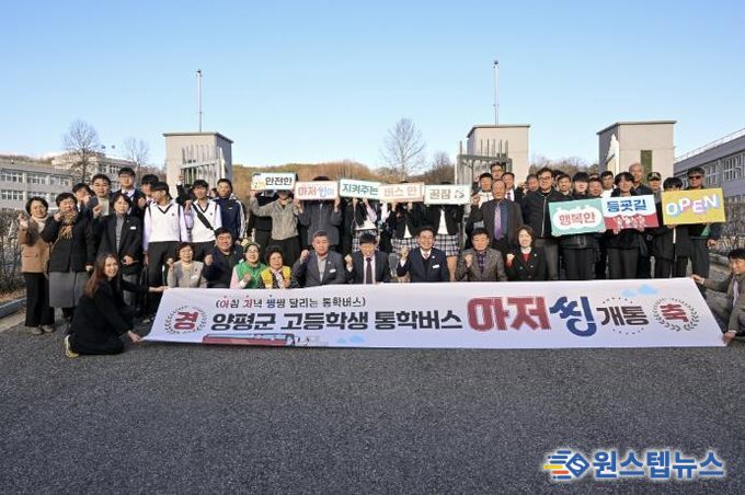 원스텝뉴스 이병희 기자 | (재)양평군교육발전위원회는 지난 3일 양동고등학교에서 고등학교 통학버스 ‘아저씽’ 개통식을 개최했다고 밝혔다. 이번 통학버스 지원 사업은 양평군 내 고등학생들의 안전하고 편리한 통학 환경 조성을 위해 추진됐으며, 지역 학생들의 통학 불편 해소와 교육 여건 개선에 기여할 것으로 기대된다.
