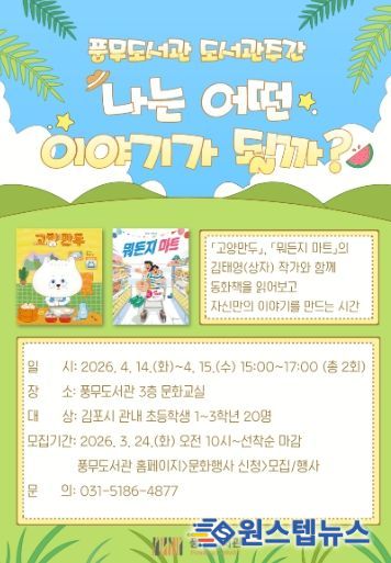 참여 신청은 3월 24일 오전 10시부터 풍무도서관 홈페이지에서 할 수 있으며, 김포시 관내 초등학생 1~3학년 20명을 선착순으로 모집한다