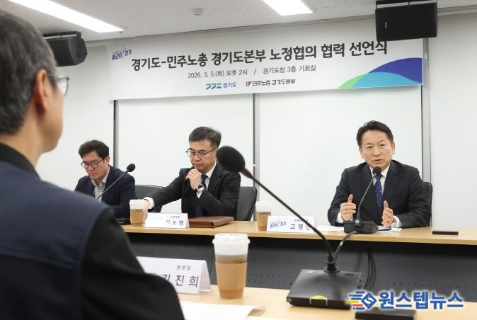 원스텝뉴스 이병희 기자 | 경기도와 민주노총 경기도본부가 5일 경기도청에서 노정 간 신뢰를 바탕으로 한 협력 선언을 했다.