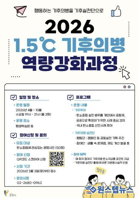 시는 시민과 함께하는 2050 탄소중립 실현을 위해 오는 20일까지 ‘2026년 1.5℃ 기후의병 역량강화 과정’에 참여할 시민 50명을 모집한다.