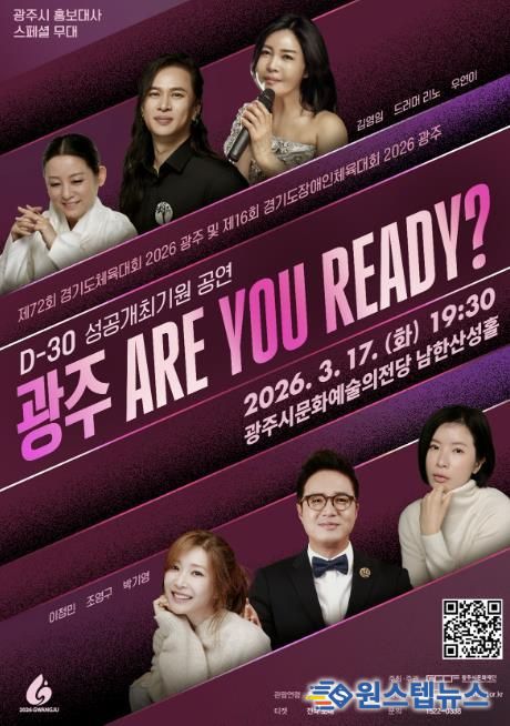 원스텝뉴스 천규영 기자 | 광주시문화재단은 오는 17일 ‘제72회 경기도체육대회 및 제16회 경기도장애인체육대회 2026 광주’의 성공 개최를 기원하고 대회 개막 30일 전을 기념하는 ‘광주 ARE YOU READY?’ 공연을 개최한다고 6일 밝혔다.