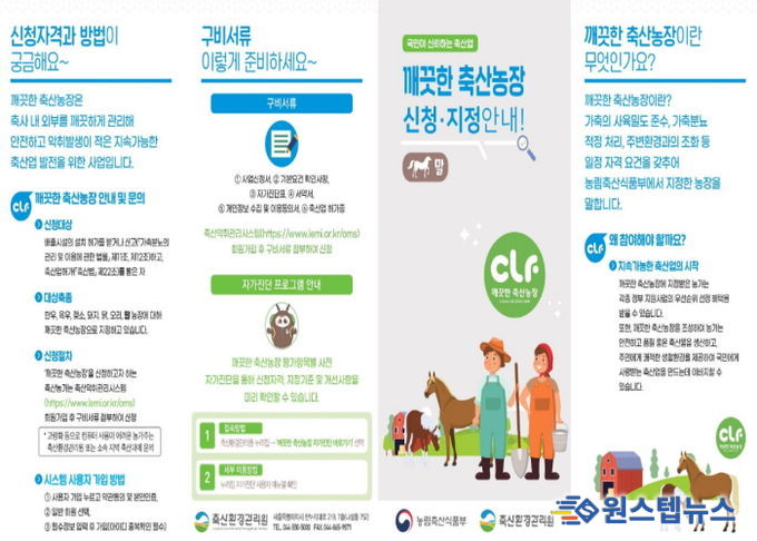 ‘깨끗한 축산농장’은 농림축산식품부 주관 인증 제도로, 축사 내·외부 위생 관리, 가축분뇨 적정 처리, 악취 저감 등 엄격한 기준을 충족한 농가에 부여된다. 이 제도는 농가의 자발적 환경 조성을 유도해 지속 가능한 축산업 기반을 마련하고 시민 생활환경을 개선하는 데 목적이 있다.