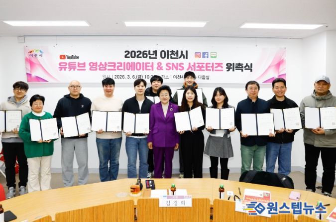원스텝뉴스 이병희 기자 | 이천시는 ‘2026년 이천시 시민 유튜브 영상크리에이터 및 SNS 서포터즈’ 위촉식을 갖고 본격적인 활동을 시작했다고 6일 밝혔다.