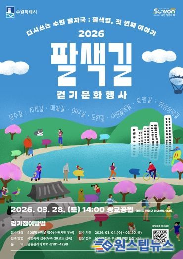 원스텝뉴스 이병희 기자 | 수원특례시가 ‘2026 팔색길 걷기 문화행사’에 참여할 시민 400명을 3월 20일까지 선착순으로 모집한다.