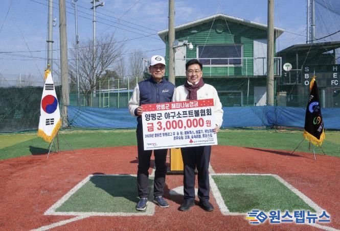 원스텝뉴스 이병희 기자 | 양평군은 지난 8일 양평군 야구소프트볼협회가 제20회 양평군수배 물맑은양평 사회인 야구대회 개막식에서 취약계층 지원을 위한 해피나눔성금 300만 원을 기탁했다고 밝혔다.