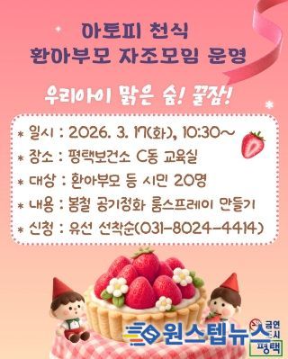평택보건소 관계자는 “자조모임을 통해 알레르기 질환에 대한 전문 지식은 물론, 부모님들 간의 정서적 교류와 실용적인 관리법을 배우는 유익한 시간이 되길 기대한다”며, “앞으로도 지속적인 정보 제공과 소통 창구 지원에 최선을 다하겠다”라고 말했다.