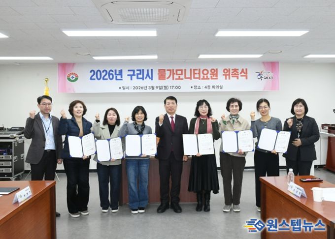 원스텝뉴스 이병희 기자 | 구리시는 지난 9일 시청 4층 회의실에서 지역 물가 안정과 공정한 소비 환경 조성을 이끌어갈 ‘2026년 신규 물가 모니터 요원 위촉식’을 개최했다.