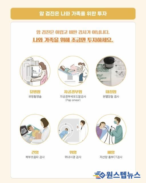 국가암검진사업은 암을 조기에 발견해 치료율을 높이고 사망률을 낮추기 위해 시행되는 제도다. 검진 비용 지원 대상자는 의료급여 수급권자와 건강보험 가입자(피부양자 포함) 중 보험료 부과 기준 하위 50%에 해당하는 시민으로, 직장가입자는 월 보험료 12만7천500원 이하, 지역가입자는 월 보험료 6만 원 이하인 경우 해당된다.