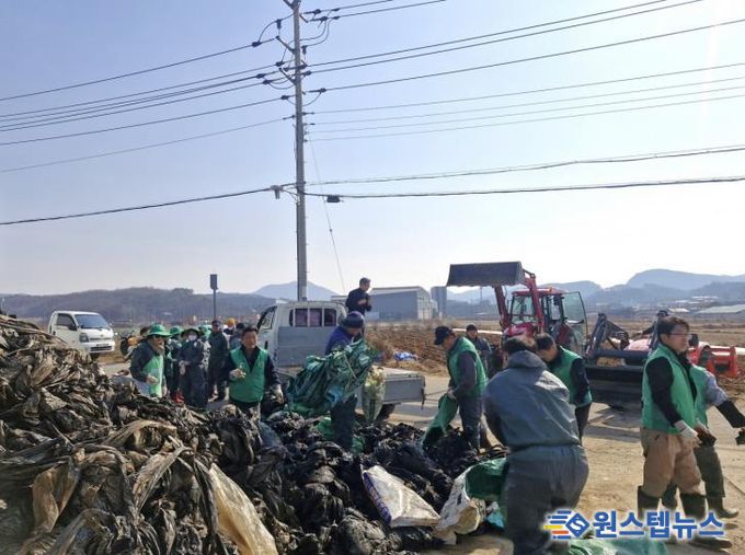 원스텝뉴스 이병희 기자 | 안성시 원곡면 남·녀 새마을협의회 회원 40여 명은 지난 10일, 농촌 지역 환경 개선과 자원 재활용을 위해 영농 폐비닐 및 폐농약병 수거 활동을 펼쳤다.