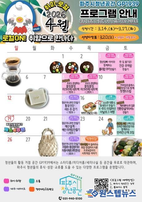 원스텝뉴스 이병희 기자 | 파주시청년공간 지피(GP)1939가 19~39세 청년(고3 포함)을 대상으로 4월 프로그램 참가자를 모집한다.