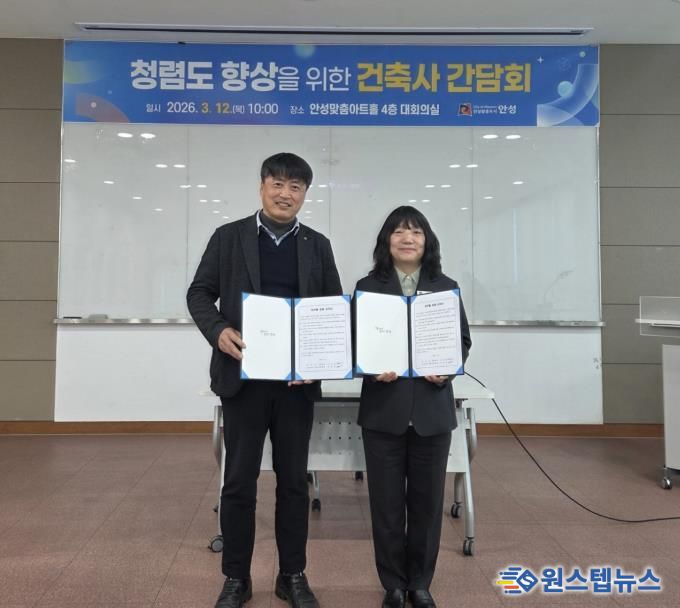 원스텝뉴스 이병희 기자 | 안성시는 3월 12일 안성맞춤아트홀 4층 대회의실에서 관내 45개 건축설계사무소를 대상으로 ‘2026년 상반기 건축사 간담회’를 개최하고, 건축 행정의 청렴성과 민원 서비스 개선 방안을 논의했다.