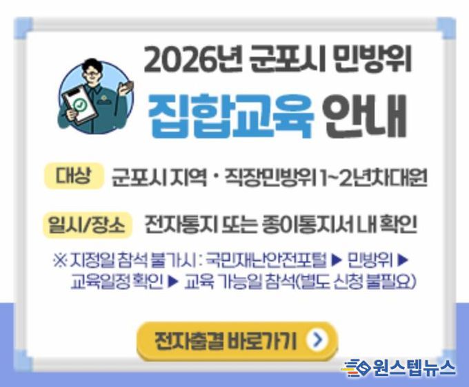 원스텝뉴스 이병희 기자 | 군포시는 민방위대원의 비상 시 대응 역량 강화를 위해 ‘2026년 민방위 기본교육’을 실시한다.