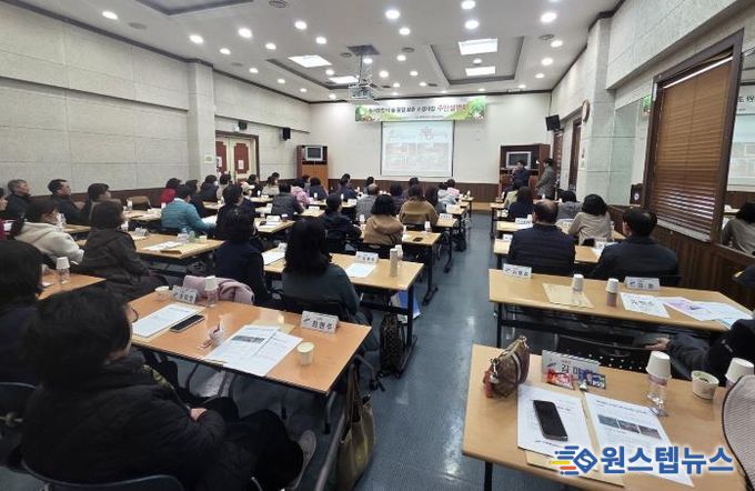 원스텝뉴스 이병희 기자 | 안산시는 지난 13일 이동 행정복지센터 대회의실에서 ‘동서화합의 숲 꽃길 보완 조성 사업’ 주민설명회를 개최했다고 16일 밝혔다.