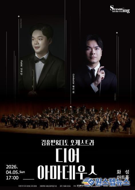 원스텝뉴스 천규영 기자 | (재)화성시문화관광재단은 오는 4월 5일 오후 5시, 화성아트홀에서 김유빈&디토 오케스트라 디어 아마데우스 공연을 개최한다.