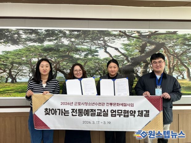 원스텝뉴스 이병희 기자 | (재)군포시청소년재단 군포시청소년수련관은 2026년 3월 17일부터 19일까지 관내 초등학교 8개교와 '찾아가는 전통예절교실' 운영을 위한 업무협약(MOU)을 진행하고 있다.