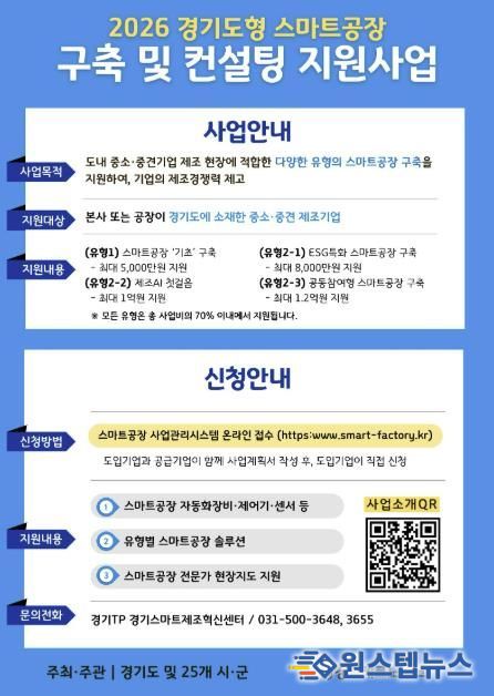 원스텝뉴스 이병희 기자 | 수원특례시가 경기도와 함께 ‘2026년 경기도형 스마트공장 구축 및 컨설팅 지원사업’ 참여 기업을 공모한다. 경기도 22개 시군 소재 중소제조기업을 지원하는데, 수원시 기업은 4개사를 선정할 예정이다.