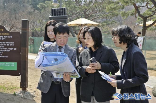 이날 방문에는 구청장, 지역 주민, 수원특례시의회 김은경·장정희·이찬용 의원 등이 동행해 올림픽공원, 효정어린이공원, 늘푸른공원, 원형육교 꽃길 및 궁촌육교 보행환경 개선 사업지를 차례로 둘러봤다.