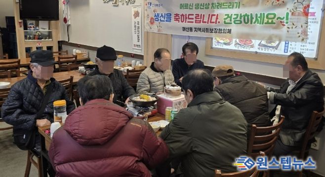 원스텝뉴스 이병희 기자 | 수원시 팔달구 매산동 지역사회보장협의체는 지난 18일 관내 식당 돈통마늘보쌈에서 매산동에 거주하는 홀몸 어르신 8분을 모시고 정성 가득한 생신상과 선물을 대접하는 뜻깊은 시간을 가졌다.