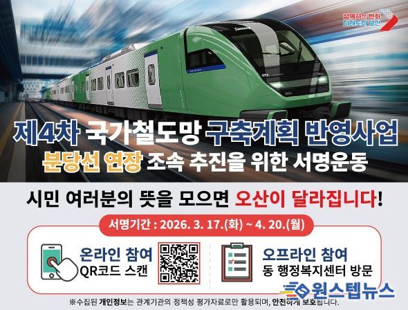 원스텝뉴스 이병희 기자 | 오산시가 분당선 연장사업 조속 추진을 위한 범시민 서명운동을 시작했다고 19일 밝혔다.