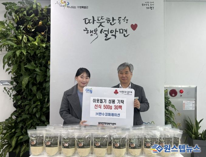 원스텝뉴스 이병희 기자 | ㈜한수코퍼레이션은 최근 가평군 설악면 행정복지센터를 방문해 관내 취약계층을 위해 선식 500g들이 30팩을 기탁했다.