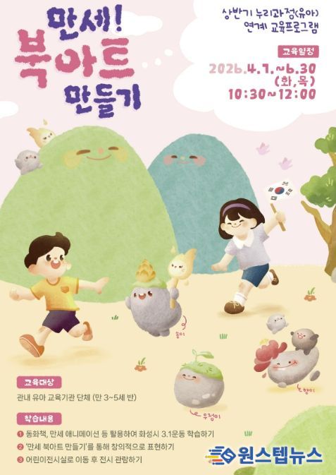 원스텝뉴스 이병희 기자 | 화성특례시 화성시독립운동기념관은 관내 유아 교육기관을 대상으로 교육프로그램 ‘만세! 북아트 만들기’를 4월 7일부터 6월 30일까지 매주 화요일과 목요일에 운영한다.