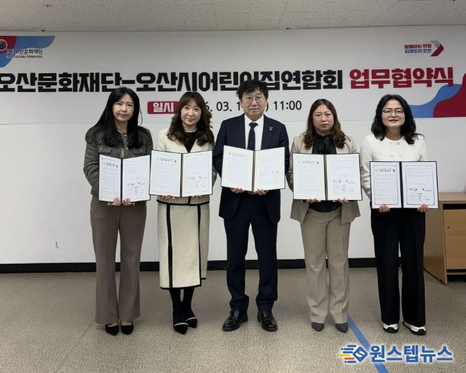 원스텝뉴스 이병희 기자 | (재)오산문화재단과 오산시어린이집연합회는 지난 19일 오산문화재단 회의실에서 지역 영유아를 위한 맞춤형 문화예술 프로그램 확대와 협력체계 구축을 위한 업무협약(MOU)을 체결했다고 밝혔다.